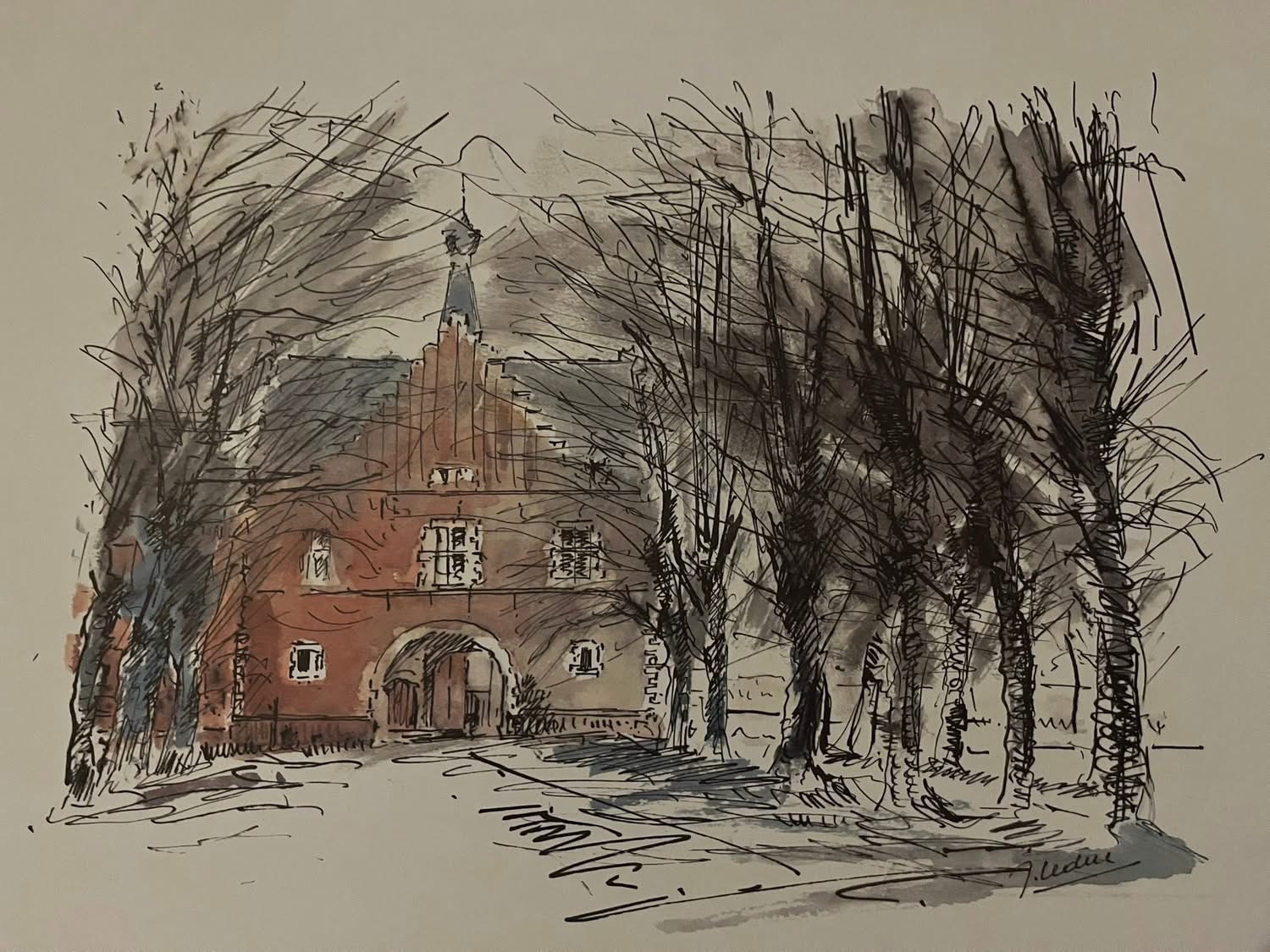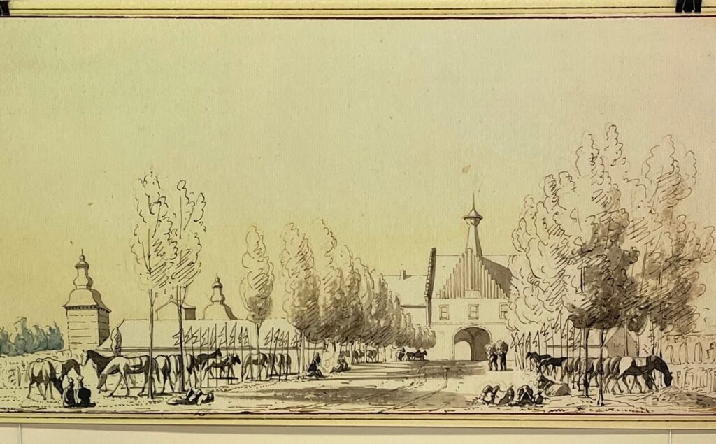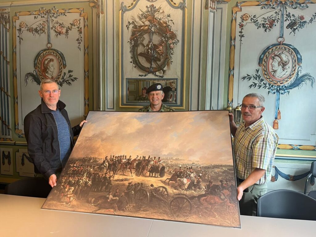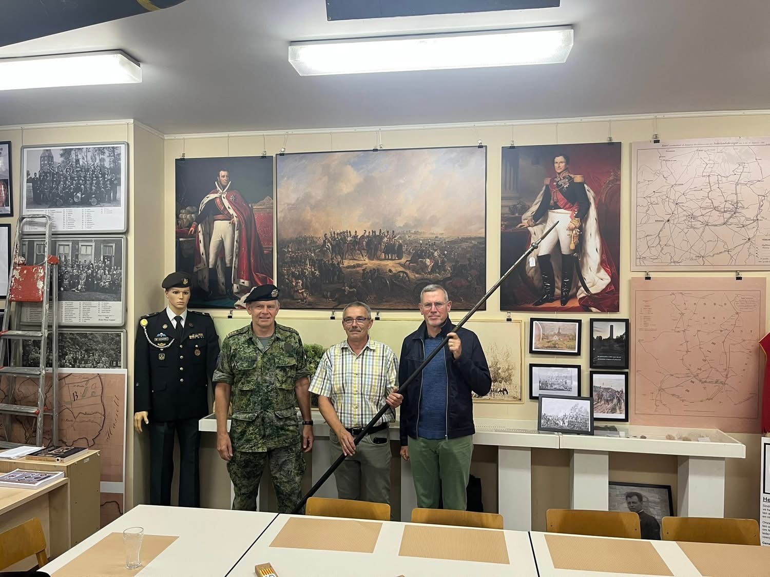 We krijgen een reproductie van schilderijen aangeboden (waar generaal Boreel op staat afgebeeld en waar onze huzaren bij de poort van de Abdij bivakkeren) en in ruil konden wij een lans uit 1819 met het Belgische bloed er nog aan, aanbieden.