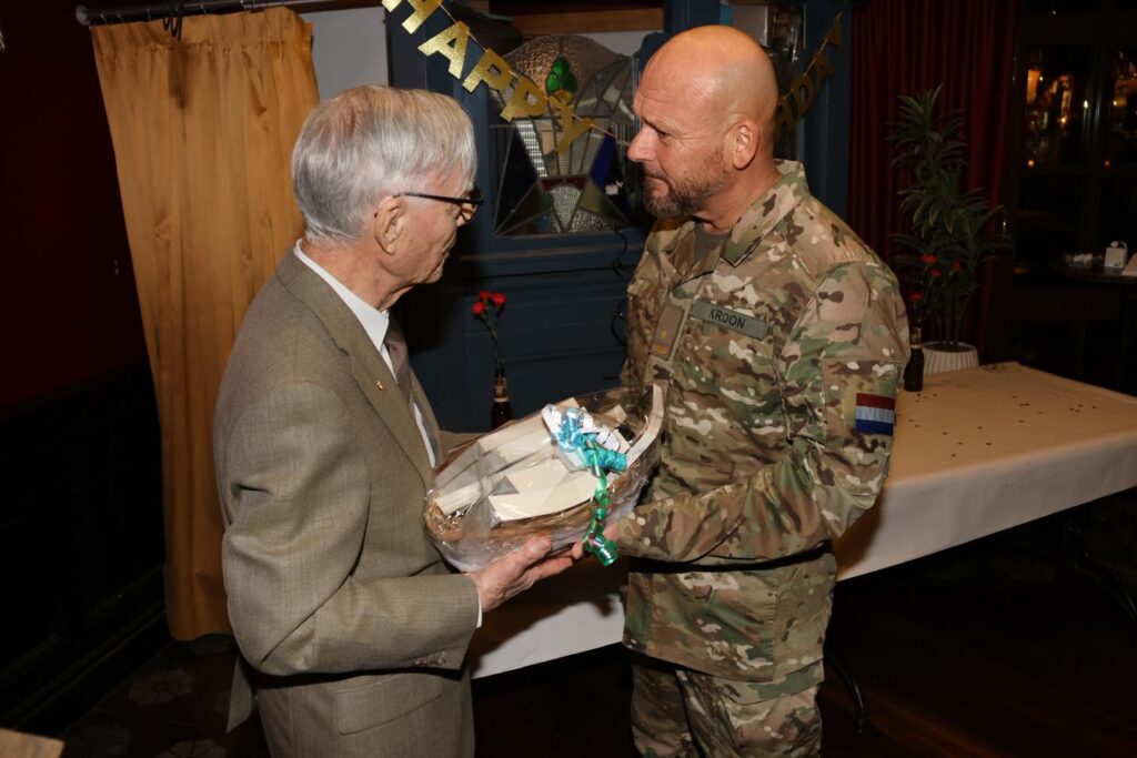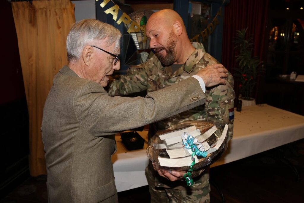 Majoor RMWO Marco Kroon was ook speciaal afgereisd om de jarige te feliciteren.