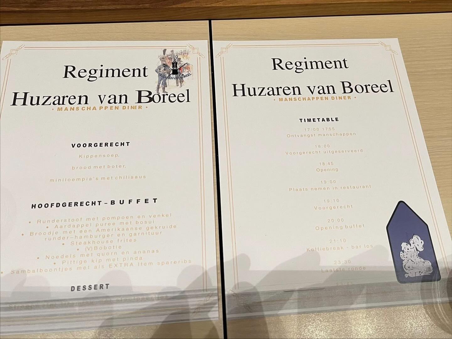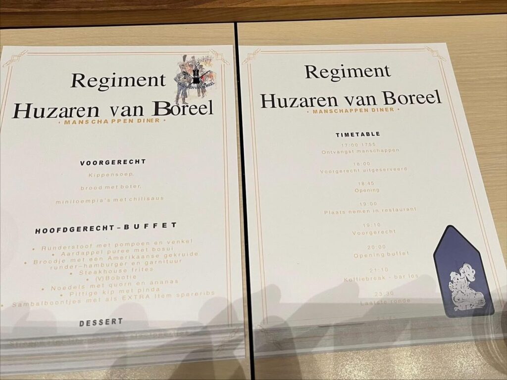 Op 20 november was het jaarlijkse Regimentsdiner van het RegimentHuzaren van Boreel voor huzaren en korporaals in de Generaal-majoor Kootkazerne in Stroe. De Regimentscommandant en Regimentsadjudant bedanken hiermee alle manschappen van het Regiment voor hun inzet, toewijding en kameraadschap.