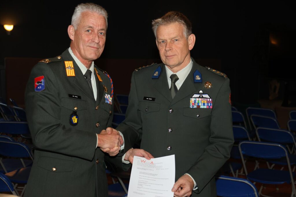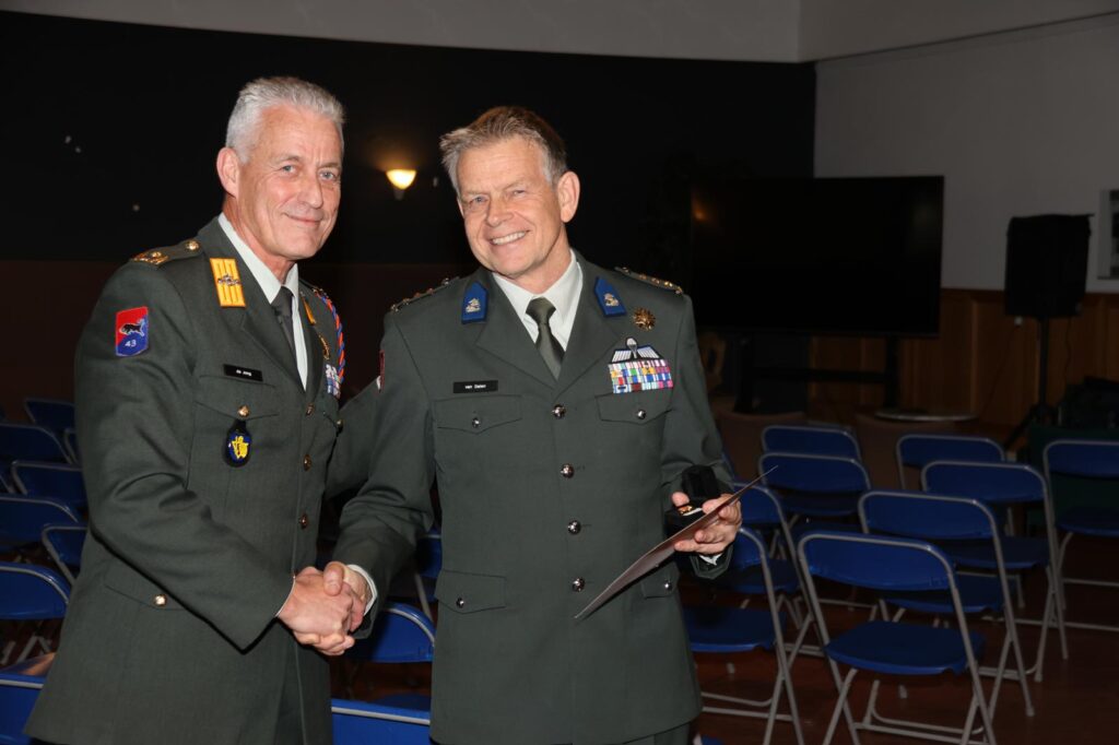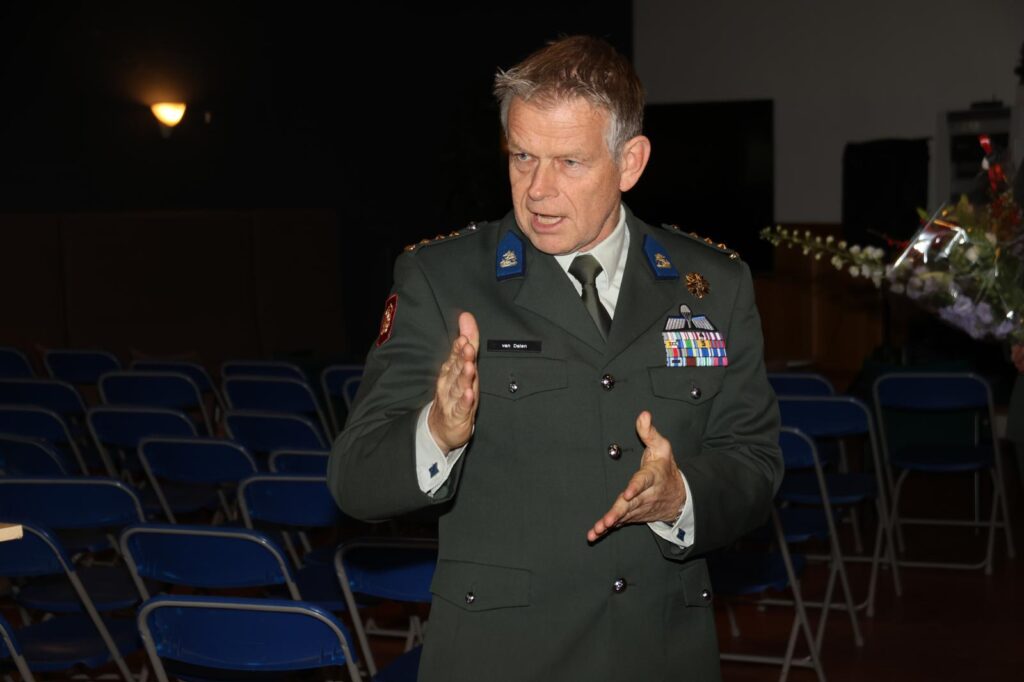 Gelukkig blijft hij nog even onze RC. Maar zijn direct leidinggevende las ons wel de akte voor van ZM de Koning waarin hij bedankt werd voor wat onze RC voor de landmacht betekent heeft. Het werd een drukke bijeenkomst.