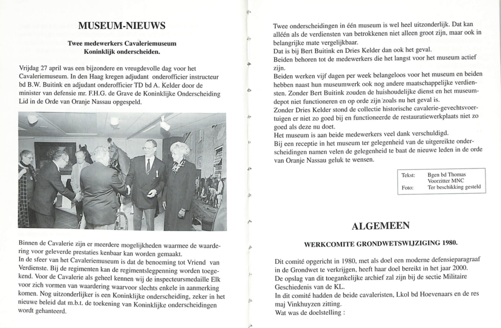 Adjudant Buitink ademde cavalerie. In zijn lange diensttijd, maar ook heel lang daarna, heeft hij veel voor ons Regiment en de Nederlandse Cavalerie gedaan.