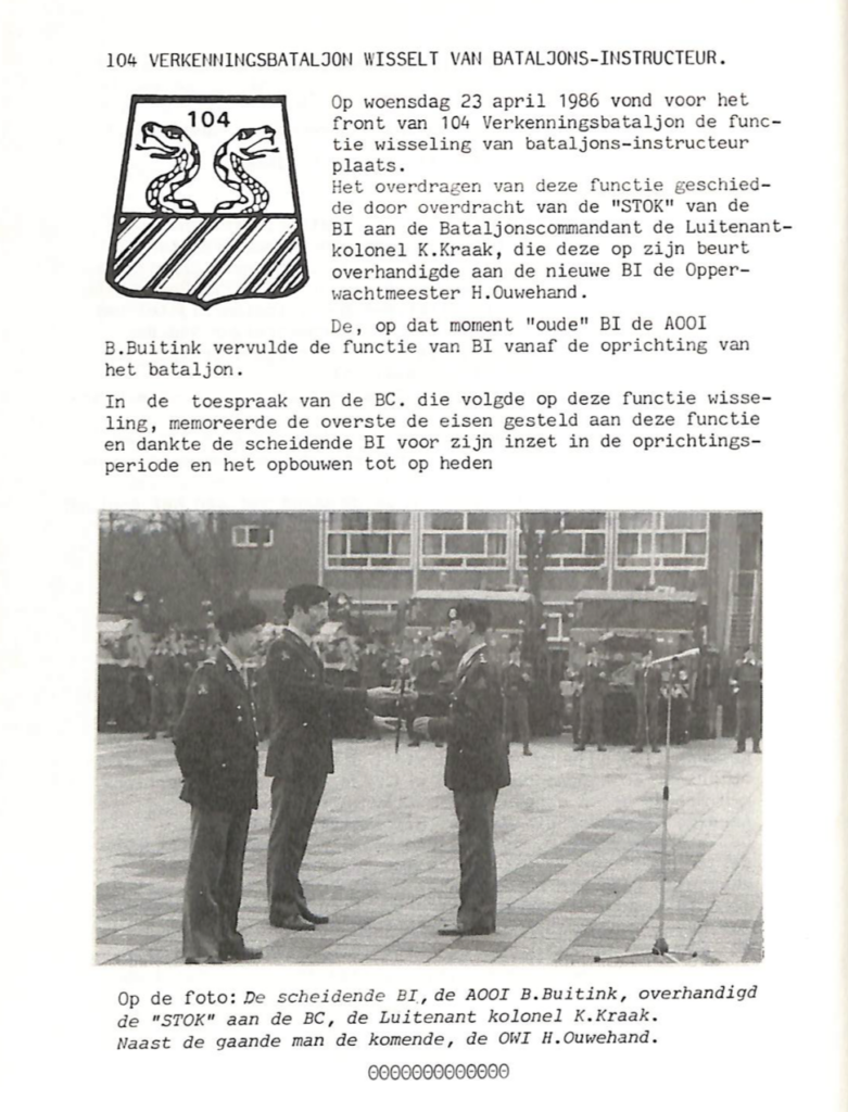 Vanaf de oprichting op 1 augustus 1983 tot 23 april 1986 was adjudant Buitink de Bataljonsinstructeur en contactpersoon voor de VOOC van 104 Verkenningsbataljon. Daar gaf hij samen met de nieuwe staf vorm en inhoud aan het Adderbataljon. Hij droeg daarna de BI-stok over aan adjudant Henk Ouwehand.
