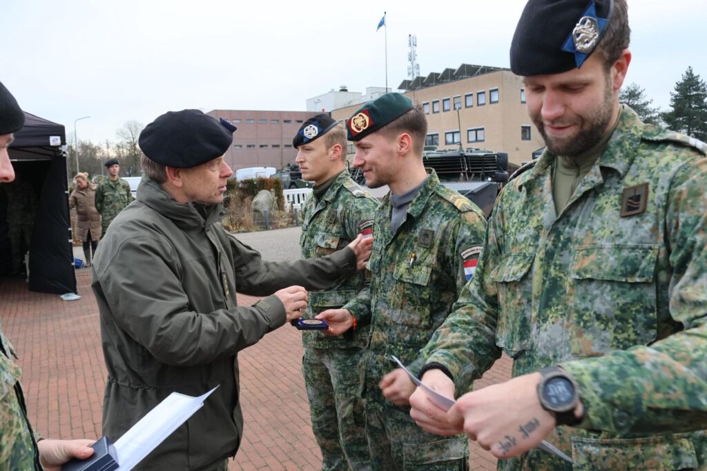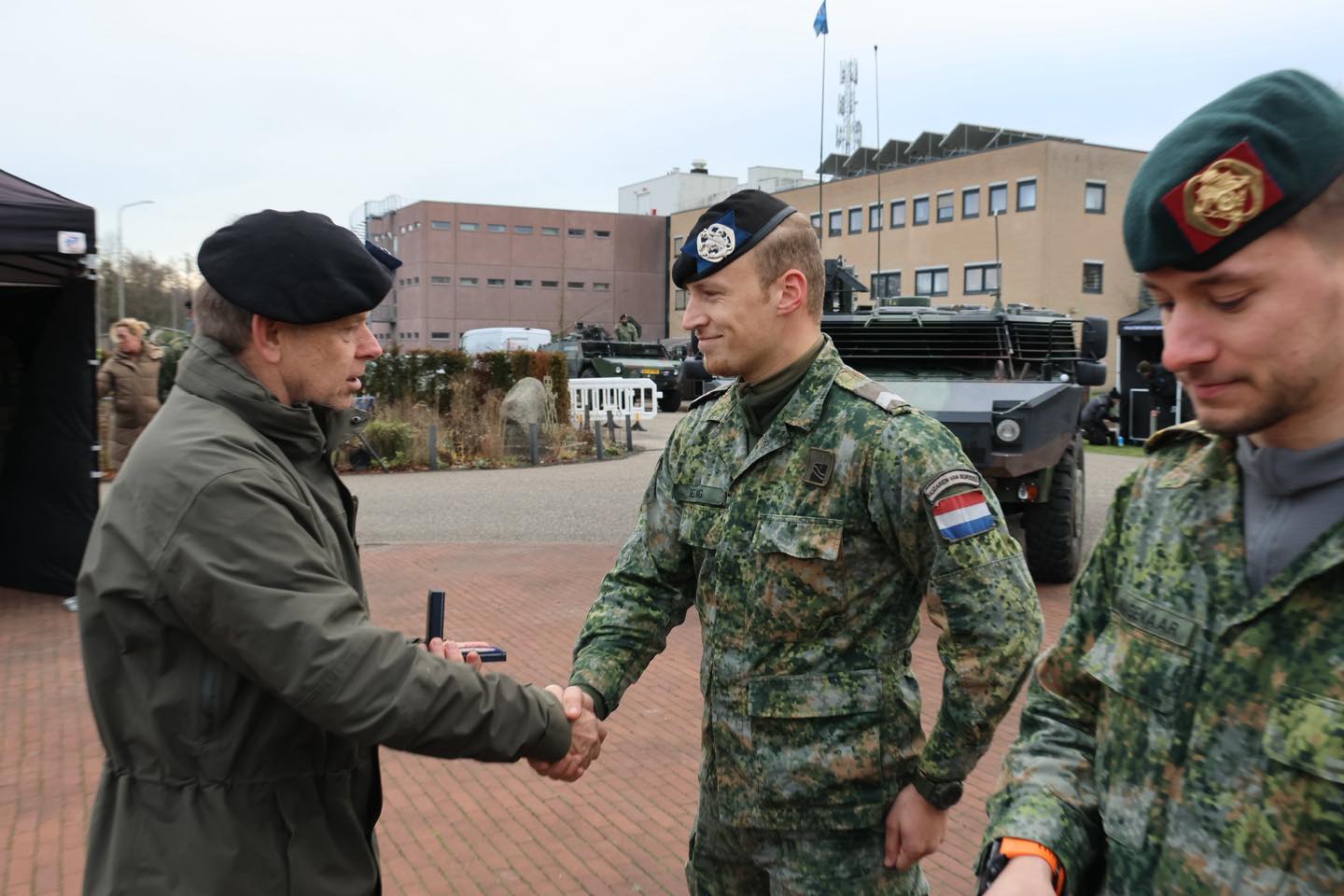 Onze Regimentscommandant heeft van de gelegenheid gebruik gemaakt om drie korporaals in het zonnetje te zetten door het uitreiken van regimentslegpenning in brons voor levensreddende handelingen eerder dit jaar.
