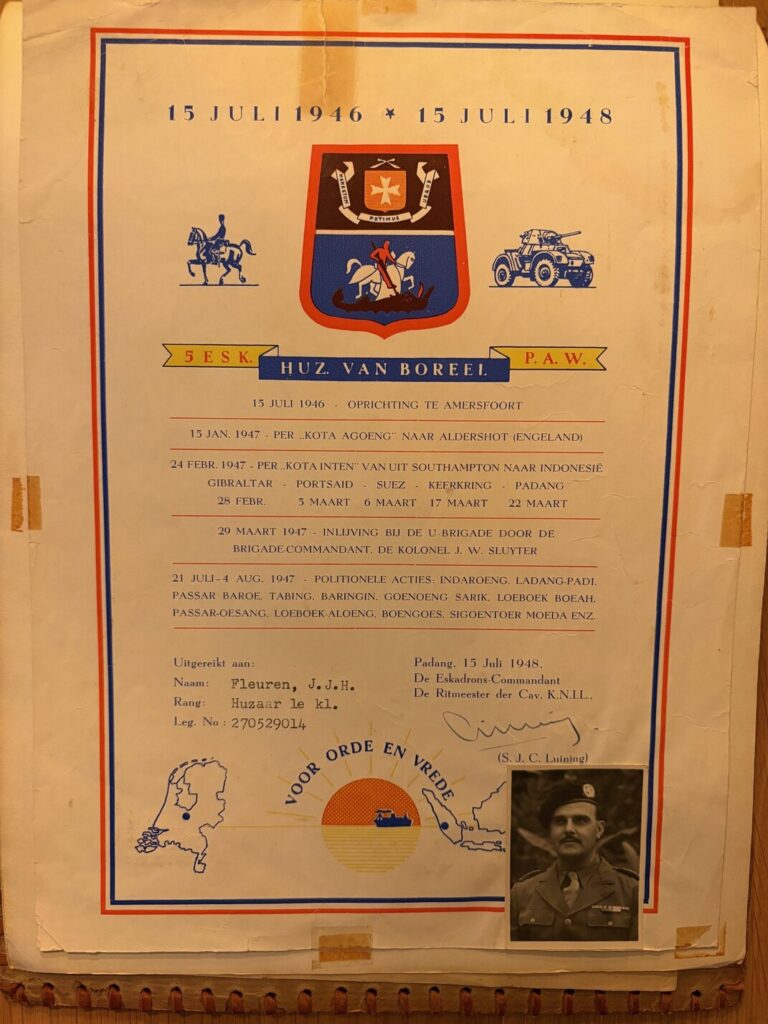 Maar dat is eigenlijk enorm zonde want elke eenheid en dus ook het Regiment Huzaren van Boreel, wil heel erg graag oude foto’s en documenten van hun makkers bewaren en opnemen in het Regimentsarchief. En mocht de familie achteraf spijt krijgen van het overdragen van de fotoalbums kunnen zij altijd een verzoek doen deze terug te krijgen; het geeft ons dan alsnog de mogelijkheid om alles digitaal te kunnen bewaren. Elke foto helpt!!!