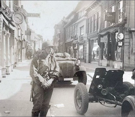 “Das verstarkte II. Bataillon (Gruppe Deventer) ..war nach überwinden der Regge-Übergänge ostwärts Enter in Rijssen auf Deventer abgedreht….Die 13. (IG-)Kompanie berichtet: Nachdem wir die ersten Häuser der Stadt Deventer erreicht haen, geht es hinein in die Stadt. Wir suchen die Kaserne und stellen dann fest, daß sie leer ist….Nach längere Verhandlung erklärt sich das Oberhaupt der Stadt zur Übergabe bereit. Am IJsselufer werden wir von rasendem MG-Feuer empfangen. An der anderen Seite erkannten wir zahlreiche Betonbunker, die besetzt waren”.
