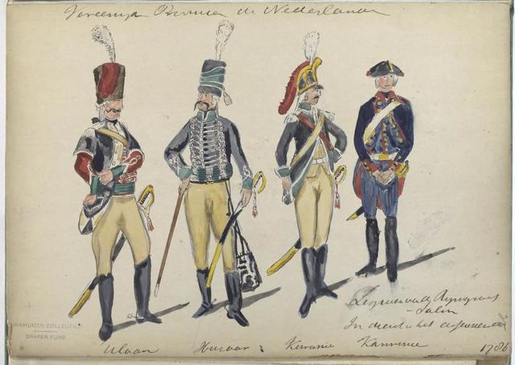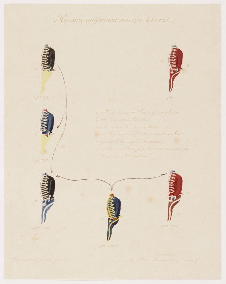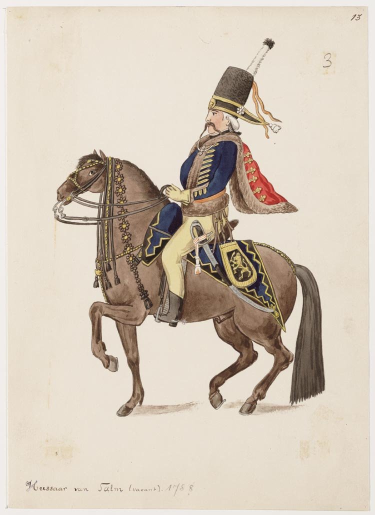 De patriotten haalden de Staten-Generaal medio 1785 over om zes ‘lichte korpsen’ op te richten *4. Dit werden de huzaren die met hun uitbundige kleding, kleine snelle paarden en wild gedrag totaal anders waren dan de gedisciplineerde op zware paarden gezeten Hollandse cavalerie. De huzaren droegen pelsmutsen en kolbakken, hadden tunieken met tressen, korte laarzen en bontmantels (dolmans) die over één schouder werden gedragen. Hun optreden draaide om snelheid, beweeglijkheid en stootkracht in kleine losse verbanden. Hun ontwrichtende kracht was bewezen tijdens de Zevenjarige Oorlog, toen zwermen Oostenrijkse en Russische huzaren de Pruisische troepen verschillende keren wisten af te matten. Bovendien konden ze door hun mobiliteit als ‘strategische reserve’ fungeren om doorbraken van de vijand op te vangen en een oprukkende vijand te vertragen.