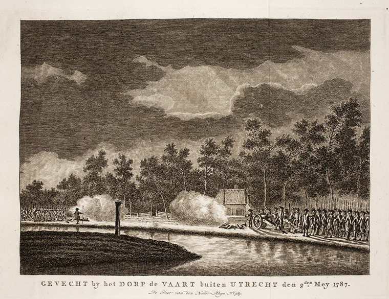 Willem V besloot intussen tot actie en omsingelde begin mei met loyale regimenten Utrecht om deze stad tot overgave te dwingen. De zwakke plek in de verdedigingsgordel rond Utrecht lag in het zuiden. Op 9 mei kwam het bij Vreeswijk tot een treffen tussen de Orangistische troepen, gecommandeerd door kolonel van Efferen en de uit Jutphaas toegesnelde Utrechtse burgermilities.