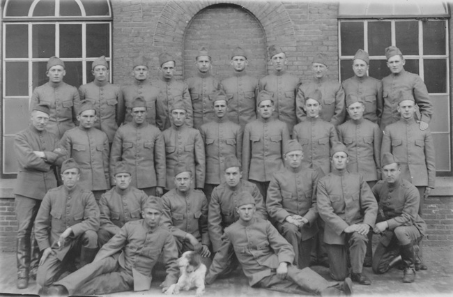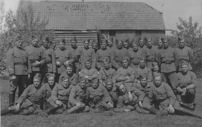 1939 Boreelkazerne Deventer, bovenste rij 3e van rechts staat Arnoldus Hondelink als huzaar.