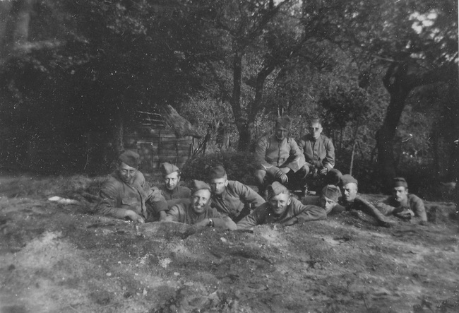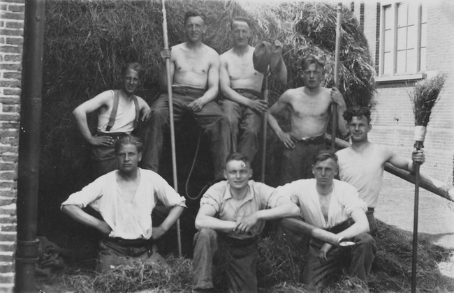 1940-02-25 mobilisatie Huzaren van Boreel te Harderwijk, vooraan zit Arnoldus Hondelink met staand collega’s.