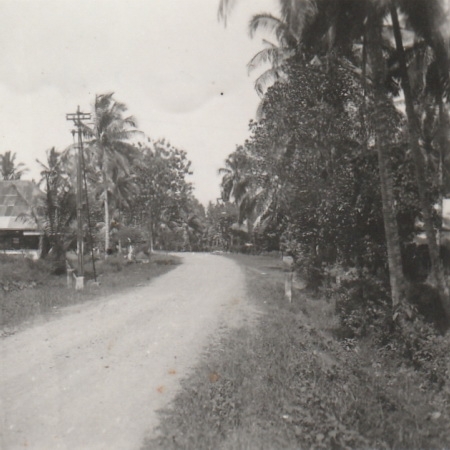 12-011 1947, 26 jan. Dit is de weg van Farnborough naar Aldershot. Die is 7 km lang. Aan de linker zijde staan onze barrakken