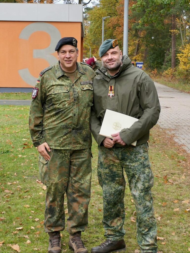Deze week ontving sergeant-majoor Westgeest het ‘Ehrenkreuz der Bundeswehr Sonderform in Silber’ voor bijzonder uitmuntende diensten.