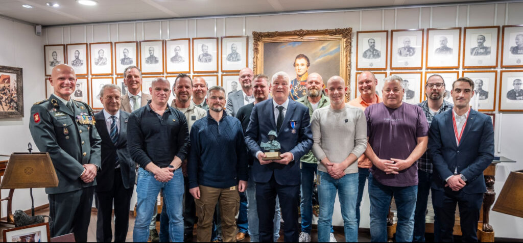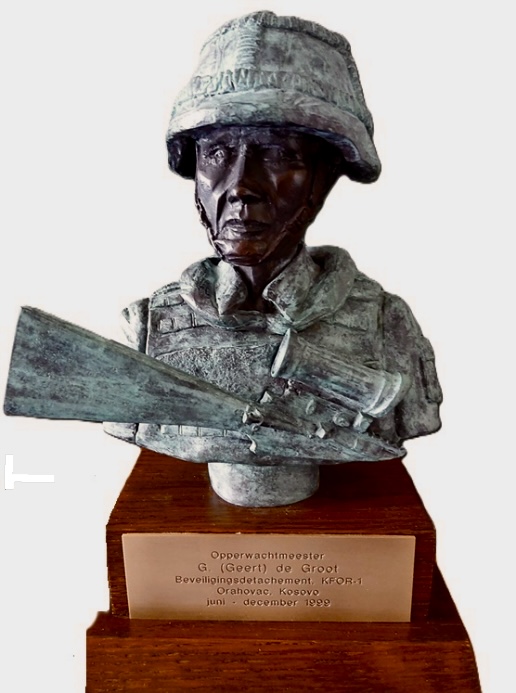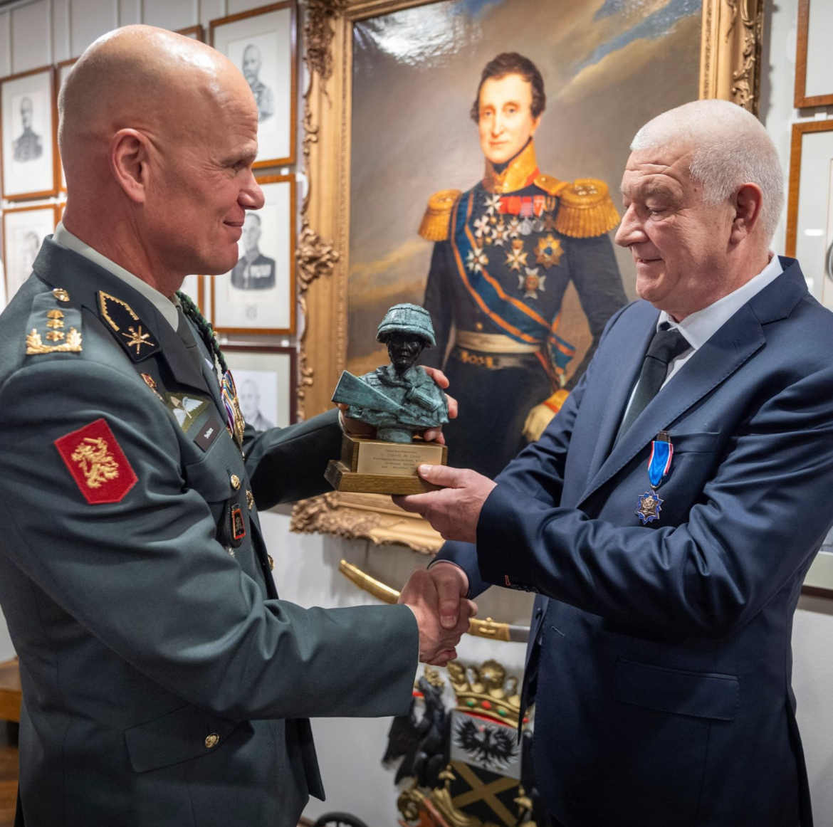 Het Regiment Huzaren van Boreel feliciteert hem met deze bijzondere erkenning en is trots op collega’s als Geert. Naast de sculptuur ontving hij ook het bijbehorende versierselen in Brons.