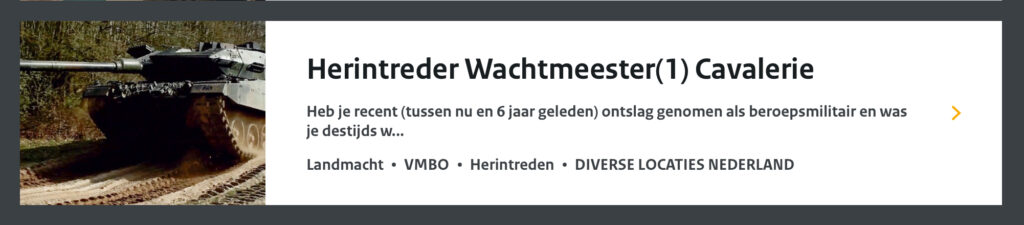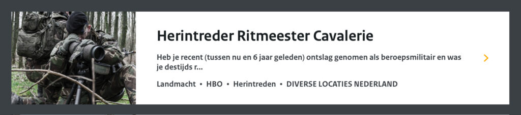 Na ontvangst van je gegevens gaan zij aan de slag met je herintredingsverzoek. In de beoordeling wordt o.a. gekeken naar je militaire historie, referenties en eerder functioneren, of je nog current genoeg bent om direct weer op functie te kunnen starten en proberen we een match te vinden met een passende arbeidsplaats.