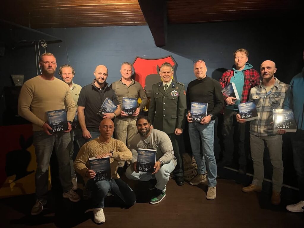Mooie gelegenheid om aan de complete club ieder een exemplaar van het boek ‘In de Schaduw van de Hindu Kush’ uit te reiken.” aldus kolonel Hans van Dalen.