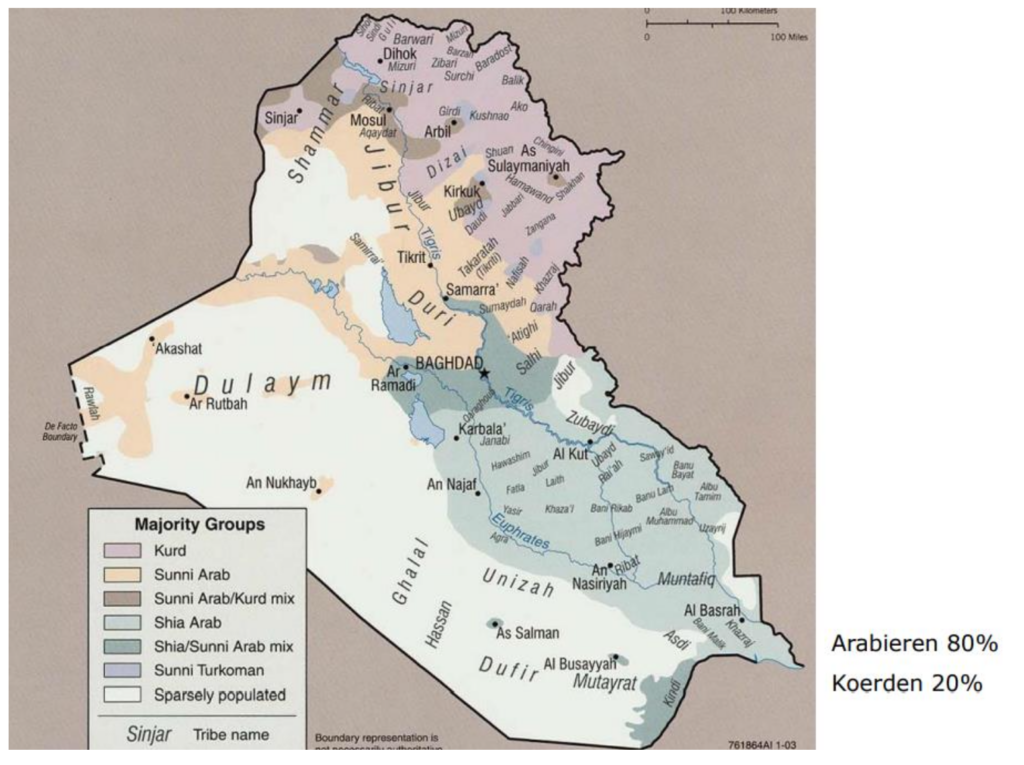 Tijd om wat (versimpelde) uitleg over de complexiteit van Irak te geven. Irak is geen eenheidsstaat. Irak is een staat die bestaat uit twee grote bevolkingsgroepen, namelijk de Arabieren (80%) en de Koerden (20%). De Arabieren wonen in het zuiden en het midden en zijn intern verdeeld in de Sjiitische geloofsstroming en de Soennitische geloofsstroming. De Sjiitische Arabieren staan gedeeltelijk onder invloed van hun geloofsgenoten in Iran (maar voelen zich niet verwant met de Iraniërs), terwijl de Soennitische Arabieren meer op Saoedi-Arabië en Syrië gericht zijn (maar zich zeker niet ondergeschikt beschouwen). Beide partijen nemen deel aan het door de internationale gemeenschap getrainde Irakese leger, maar hebben ook grote eigen milities. Vooral de Sjiitische milities zijn groot en hebben zelfs een officiële status gekregen door hun succesvolle strijd tegen ISIS.