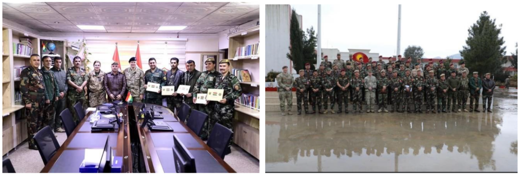 De Nederlandse inbreng was dus voorheen groter. Tijdens de gevechten met ISIS werd bijvoorbeeld F-16’s in gebracht en tijdens Fase III werden Koerdische eenheden ook volop getraind met ondermeer Nederlandse instructeurs. Dat gebeurde toen vanuit het Kurdish Training Control Center (KTCC). Van hier zwierven internationale trainingsteam over geheel Koerdistan uit om trainingen bij eenheden of op trainingscentra te geven. Foto’s met de Nederlandse instructeurs erop hangen hier nog aan de muur. Hier staan ook diverse bekende onderofficieren van het Regiment Huzaren van Boreel op.