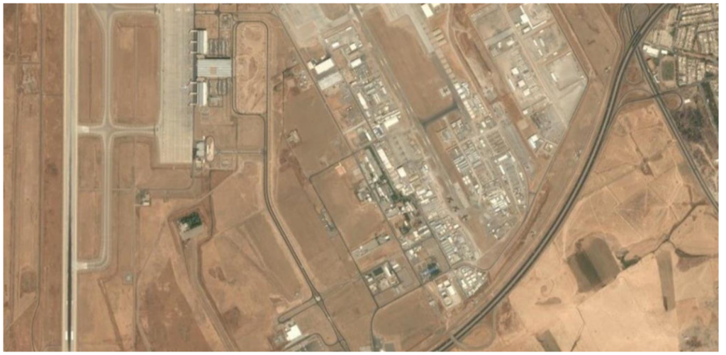 Erbil Airbase met links het civiele en rechts het zwaar bewaakte militaire gedeelte
