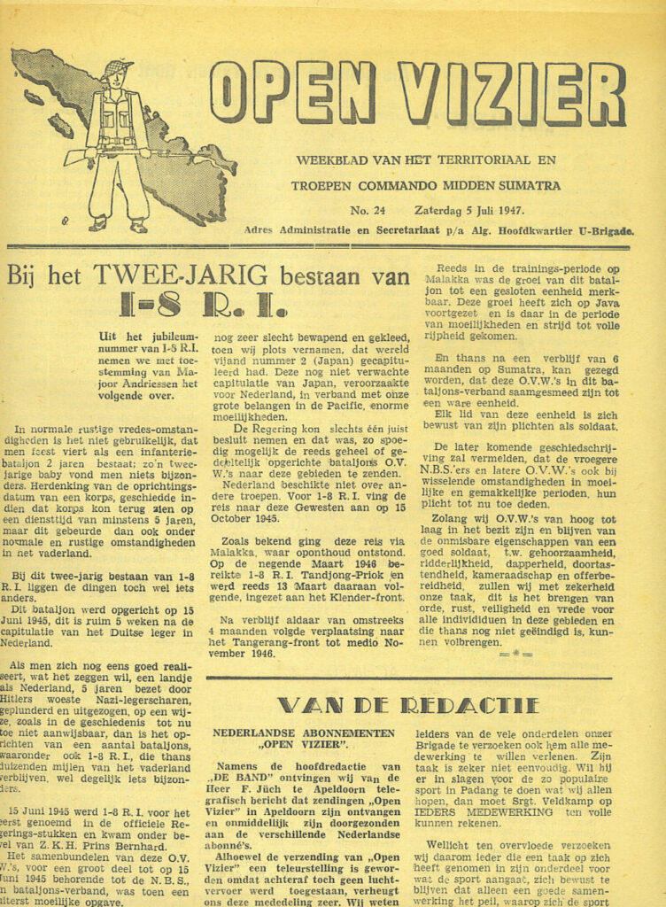 - Open Vizier, Weekblad van het Territoriaal en Troepencommando Midden Sumatra.