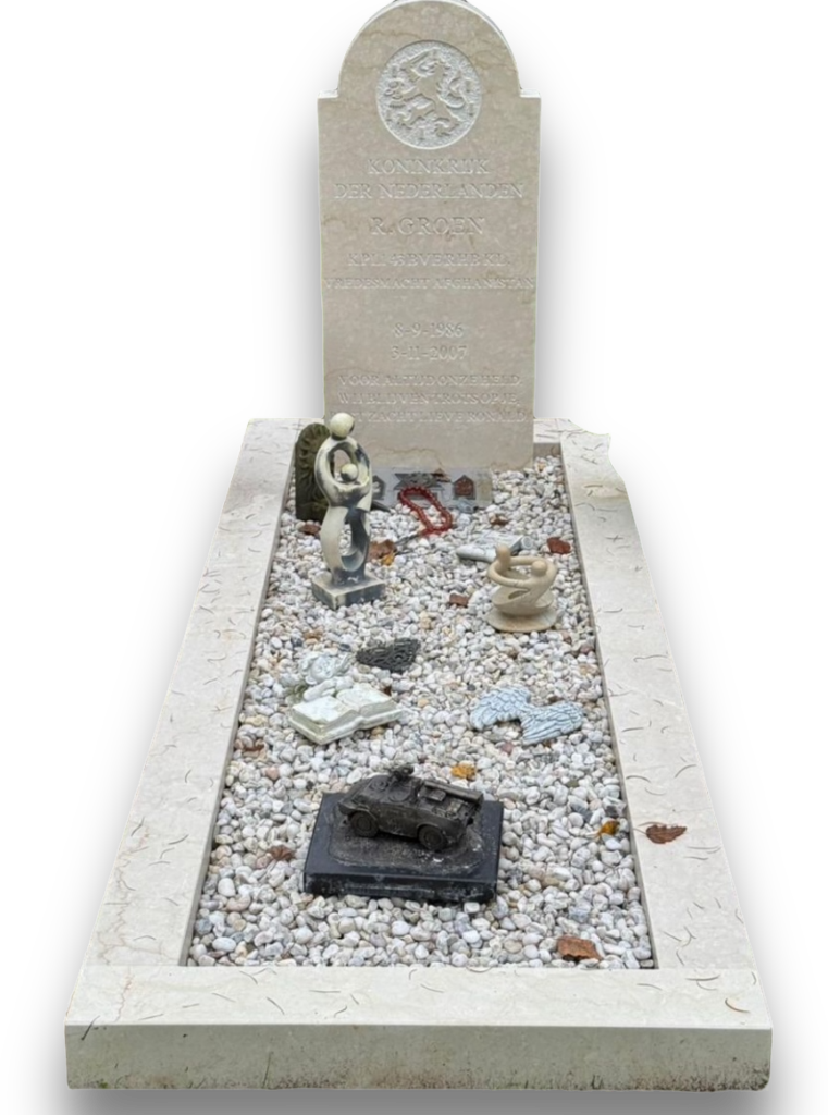 Op zondag komt de burgemeester langs en volgt de vraag hoe Ronald begraven moet worden. Ze kiezen voor ‘beperkte militaire eer’. ,,Want de begrafenis moest ook van ons zijn.’’ Acht militairen begeleiden op dinsdag de kist van Ronald, via Dubai naar Eindhoven. ,,Tussen al die hooggeplaatste militairen had je bijna niet in de gaten dat het om je eigen kind ging’’, zegt Hans. ,,Je voelt je niet op je gemak.’’ In Epe wordt Ronald Groen de dinsdag erna begraven op de begraafplaats Norelbos. Wilma: ,,Er is een leven voor die tijd, en een leven na die tijd.’’
