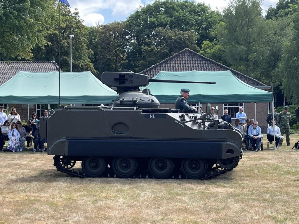 “Een droevige dag voor ons Regiment Huzaren van Boreel. Oud RHB icoon kolonel Frank Overdiek heeft het uniform uitgetrokken. Als goedmakertje mochten we wel genieten van het unieke geluid van een M113 C&V. Gelukkig kon het plantsoen van de Bernhard kazerne ertegen…” aldus kolonel Hans van Dalen.
