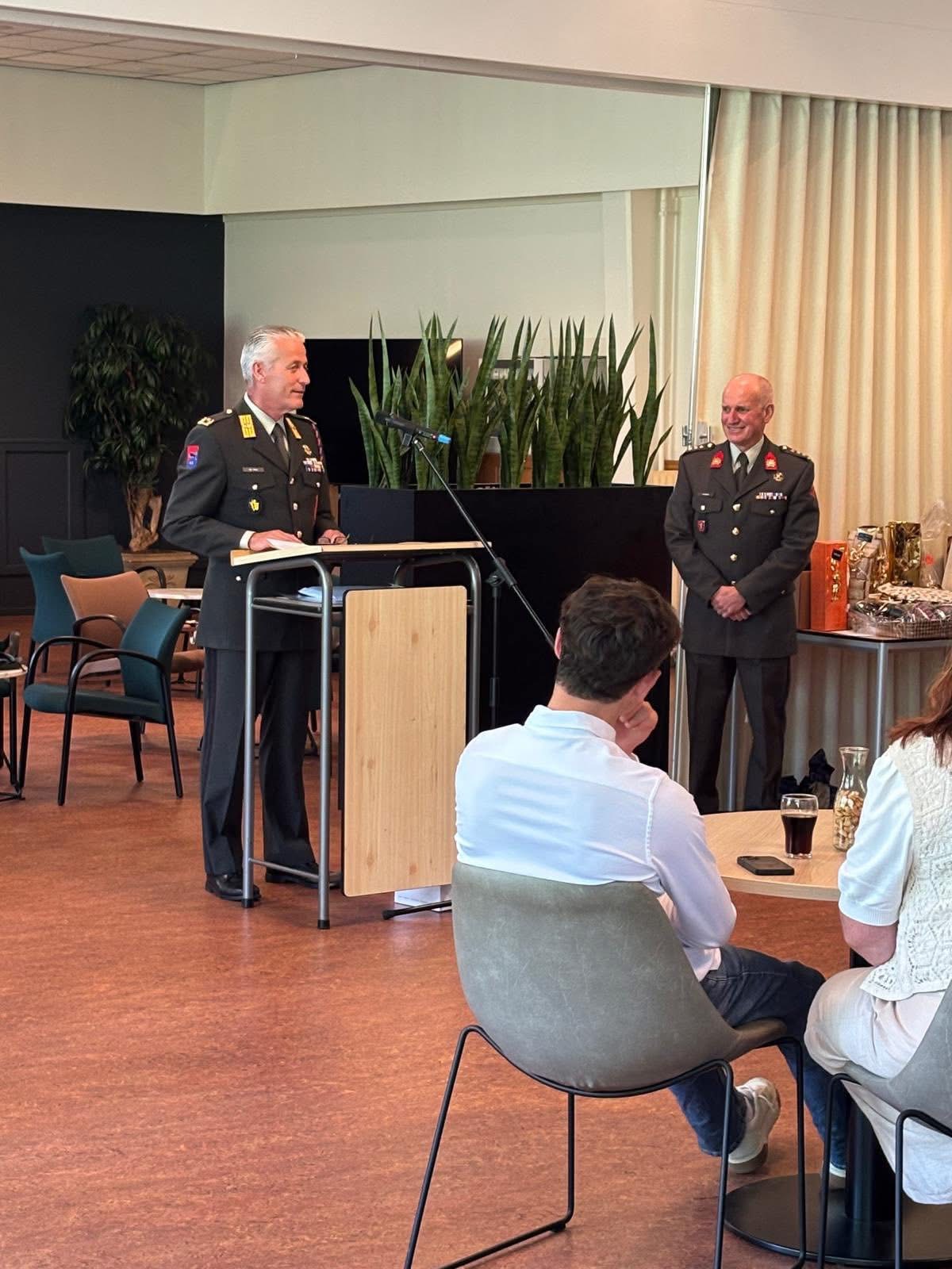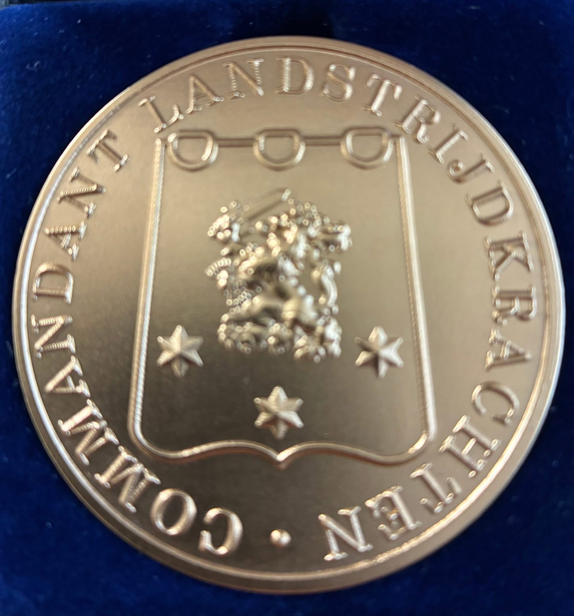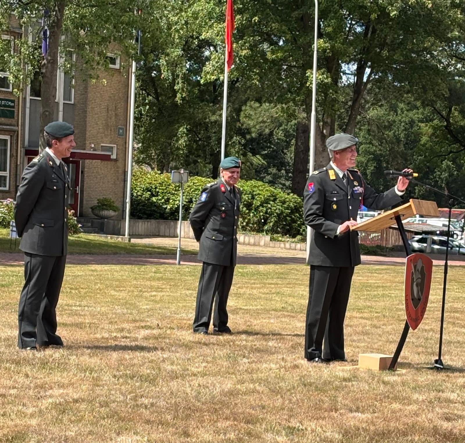 Zelf schrijft kolonel Overdiek hierover:”Afgelopen donderdag 10 juli heb ik het commando over het Land Training Centre aan Kolonel Ralf Goossens overgedragen. Tevens was dit mijn FLO, na 43 jaar bij de Koninklijke Landmacht te hebben gediend. Het was mij een eer en genoegen. Buiten de vele cadeau’s en complimenten heeft C-LAS mij de legpenning in goud toegekend. Wat een eer! Via deze weg dank ik al degenen waar ik mee heb gewerkt.“