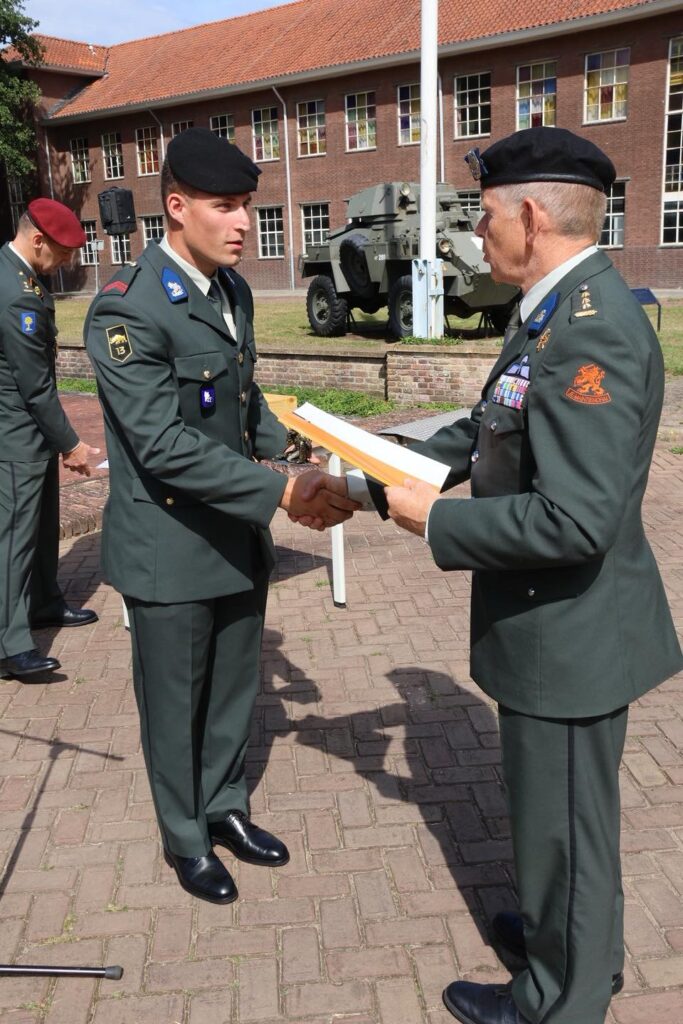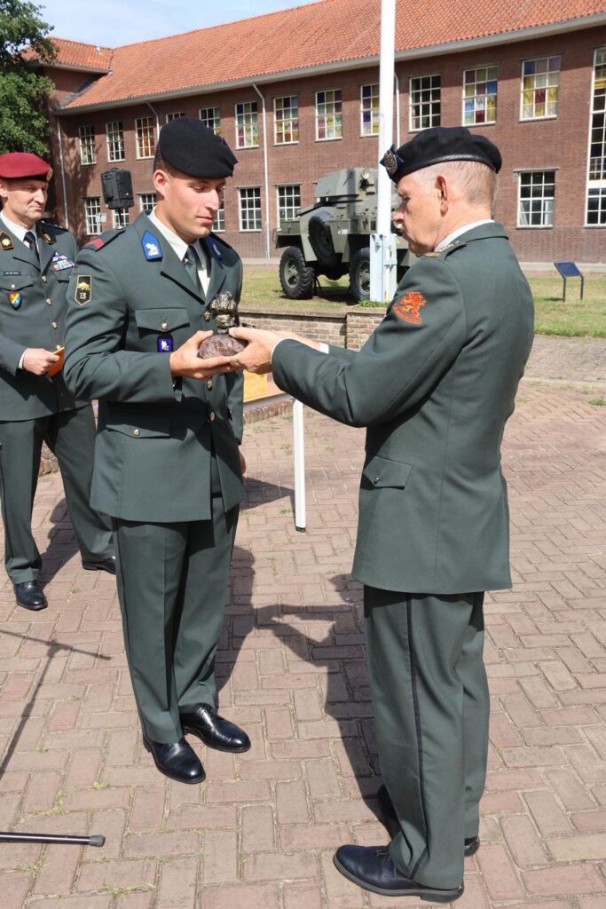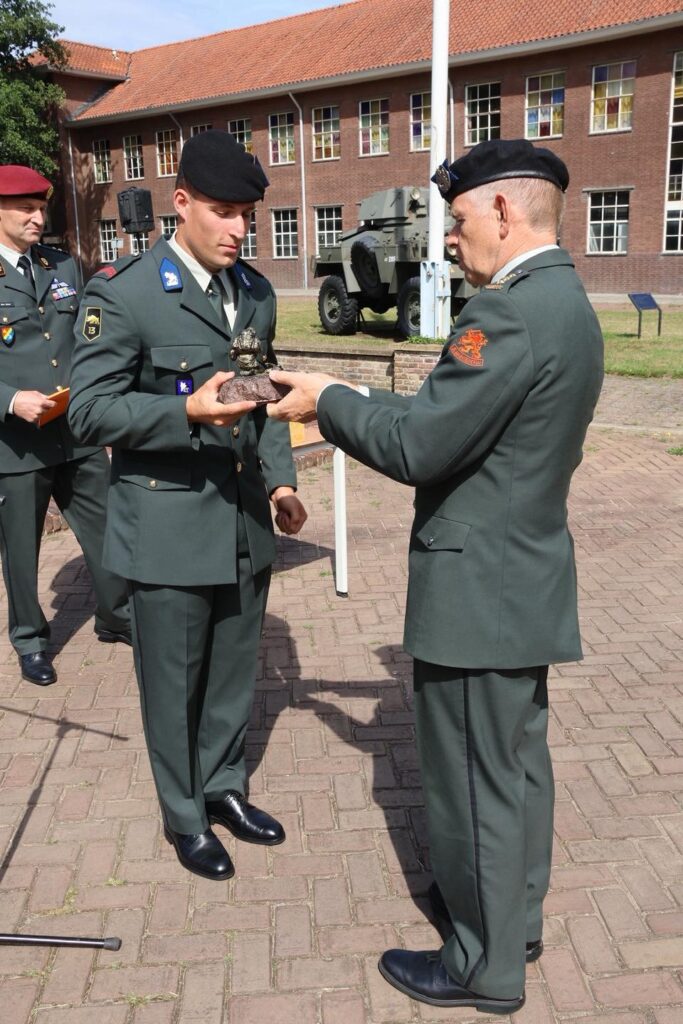 De best man van deze cursus kreeg van onze Regimentscommandant kolonel Hans van Dalen de sculptuur uitgereikt.