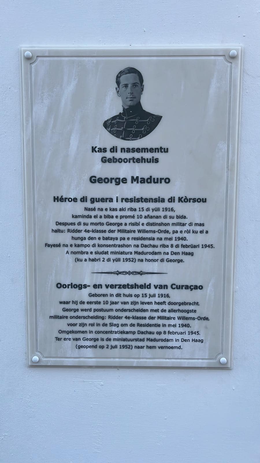 George Maduro werd op 15 juli 1916 op Curaçao geboren en op 10-jarige leeftijd naar Nederland gestuurd om verder te studeren. Hij studeerde rechten in Leiden en werd in 1940, tijdens de Duitse inval, gemobiliseerd als reserve-tweede luitenant bij de cavalerie. Maduro speelde een belangrijke rol in het verzet en werd na de oorlog geëerd met de Militaire Willems-Orde, postuum. Madurodam, de miniatuurstad, is opgericht als een levende herinnering aan George Maduro en als fondsenwerver voor goede doelen.
