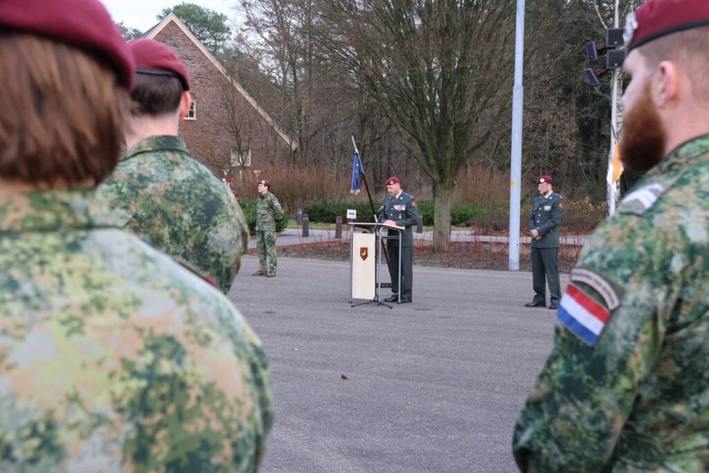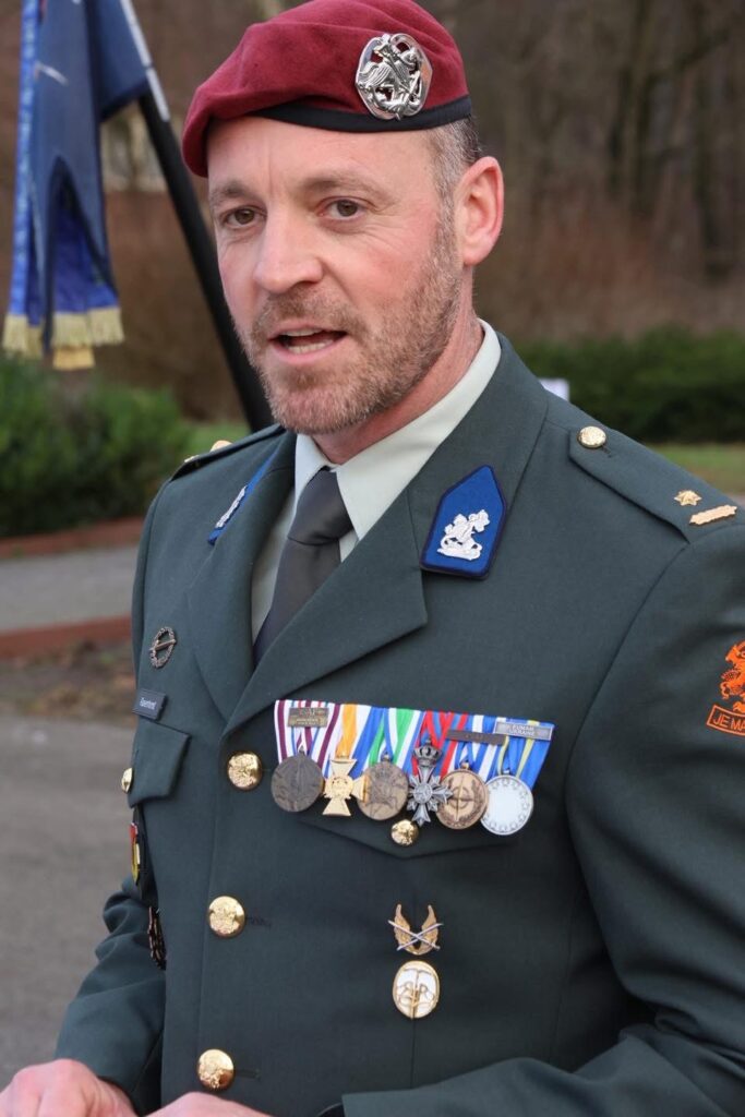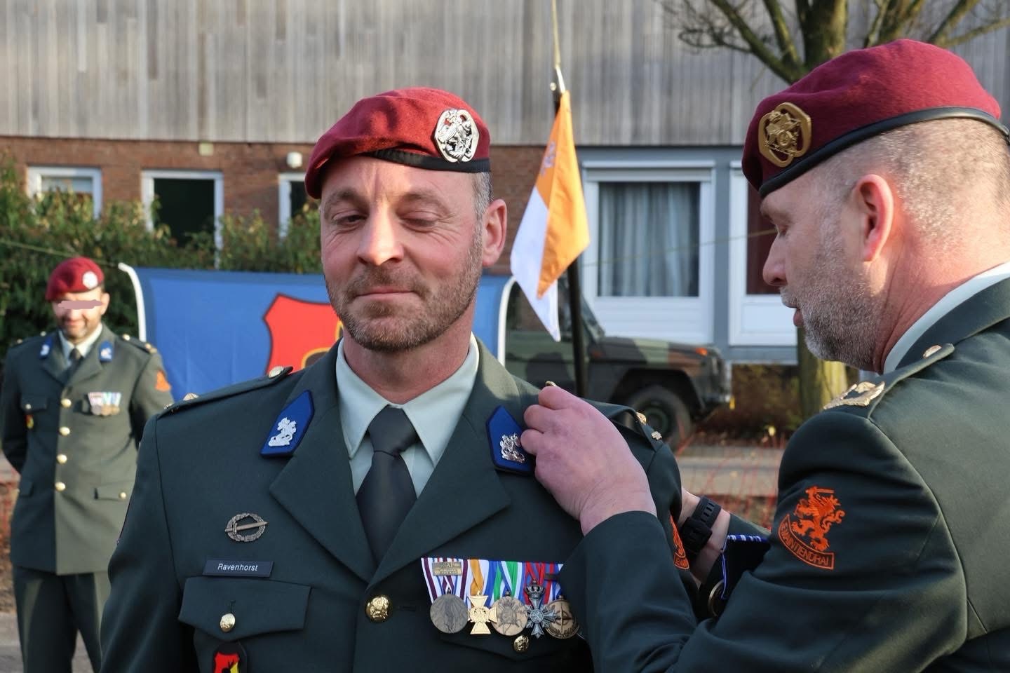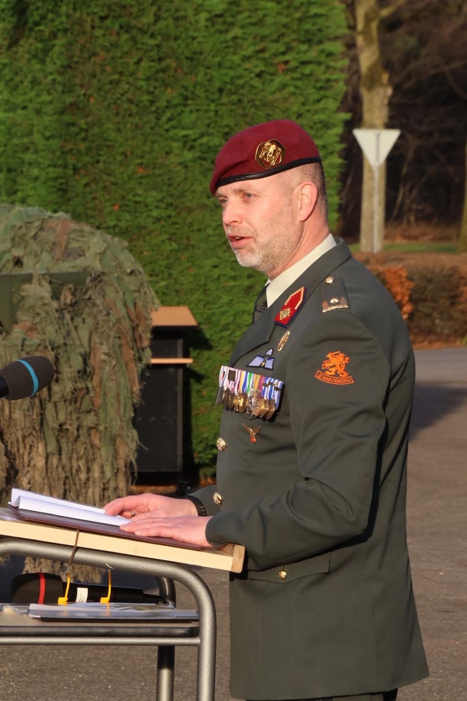 Chief Gerwin werd door de brigade commandant, generaal Grandia, tijdens de ceremonie verrast met een rood erekoord vanwege zijn inzet.