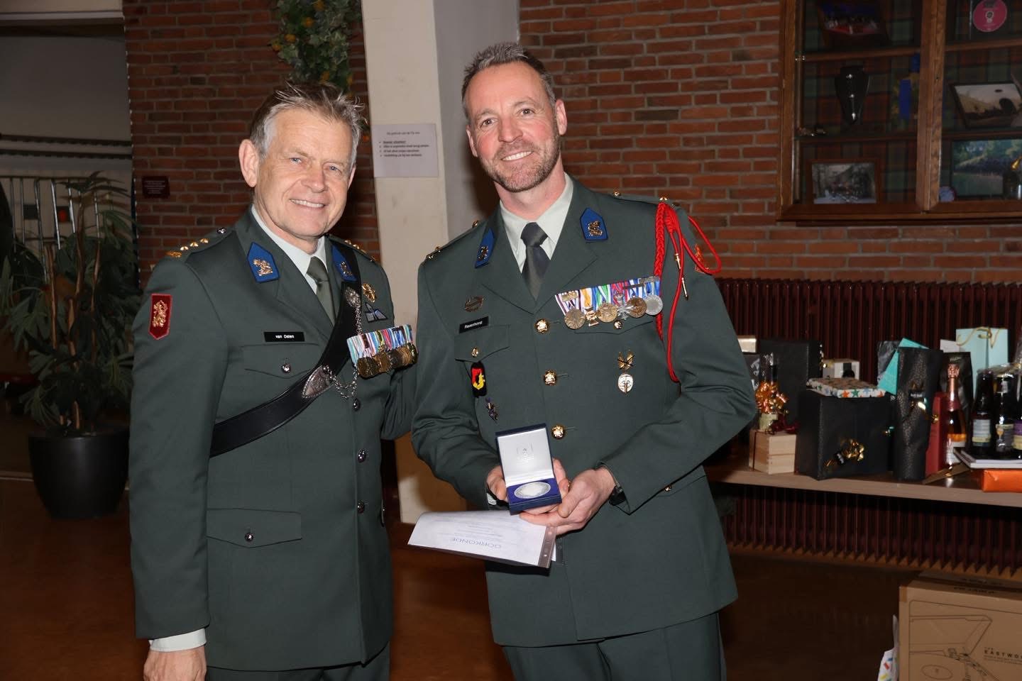 Tijdens de receptie ontving Chief Gerwin vele cadeaus maar werd door onze RC ook nog in het zonnetje gezet door het uitreiken van de Regimentslegpenning in zilver voor zijn inzet voor het BVE en zijn mensen in het algemeen.