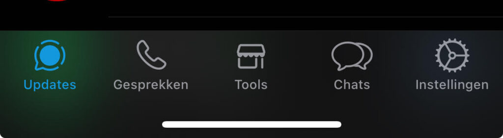 Op je telefoon vindt je WhatsApp-Kanalen onder “Updates” in de applicatie (zie afbeelding hierboven), dus op je beginscherm onderaan.